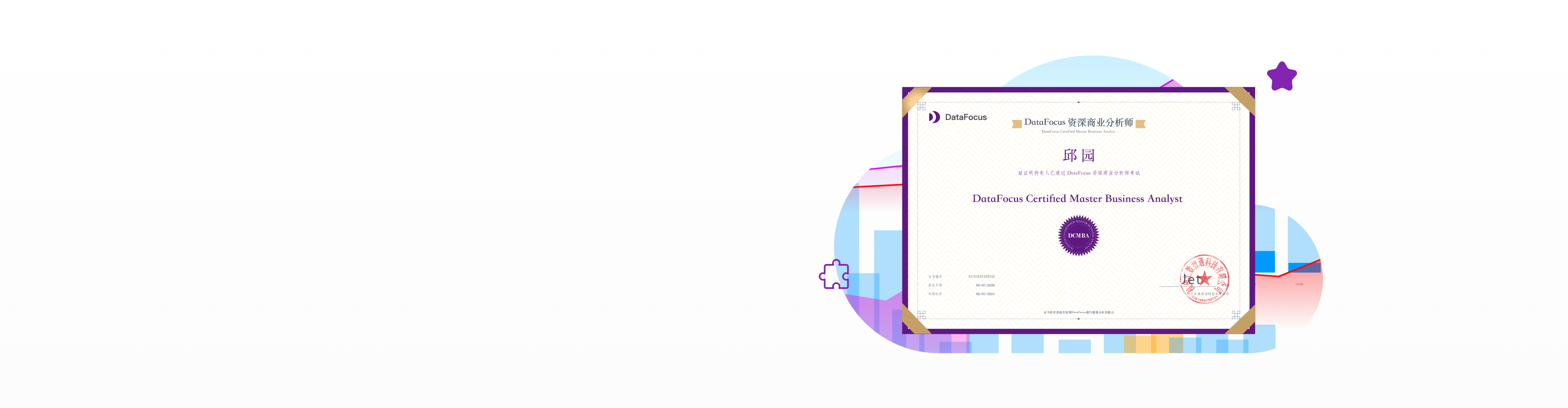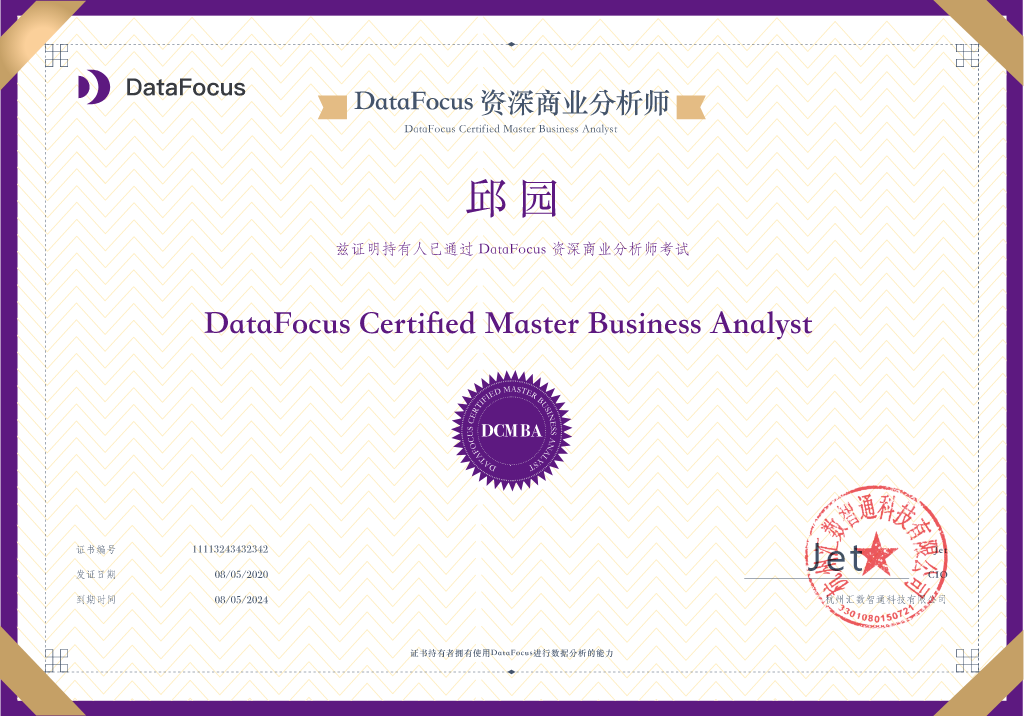 DataFocus 凭借众多的项目经验,基于数据分析与应用人才的职业发展生命周期,推出了 DataFocus 职业资格认证。通过该认证,可以充分展示您在商业分析的专长优势和技能,让自己脱颖而出。